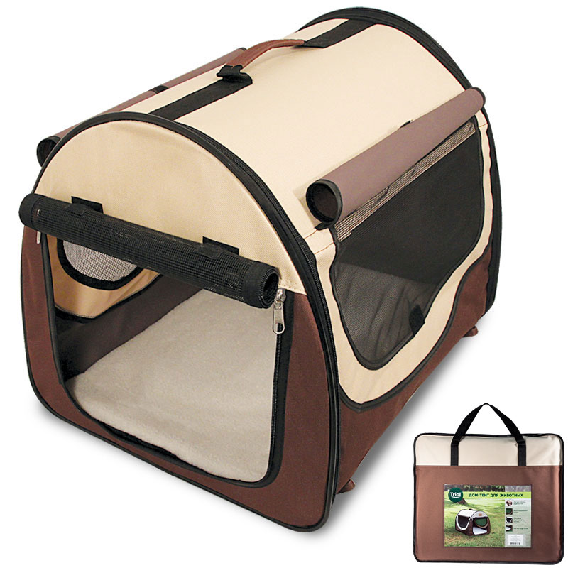 Складной дом-тент для животных — оптимальное решение для отдыха за городом, работы на выставках и для комфортной транспортировки питомца в автомобиле. Тент овальной формы оснащен большим вентиляционным окном и просторным входом, которые легко закрываются на молнию. В комплекте изделия также есть съемная подстилка, очень удобная для отдыха животного. Тентовое покрытие изготовлено из прочного синтетического экоматериала, а сама конструкция легко складывается в удобную сумку, не занимая много места. Цвет изделия: бежево-коричневый. Размер: 650х490х500мм.
