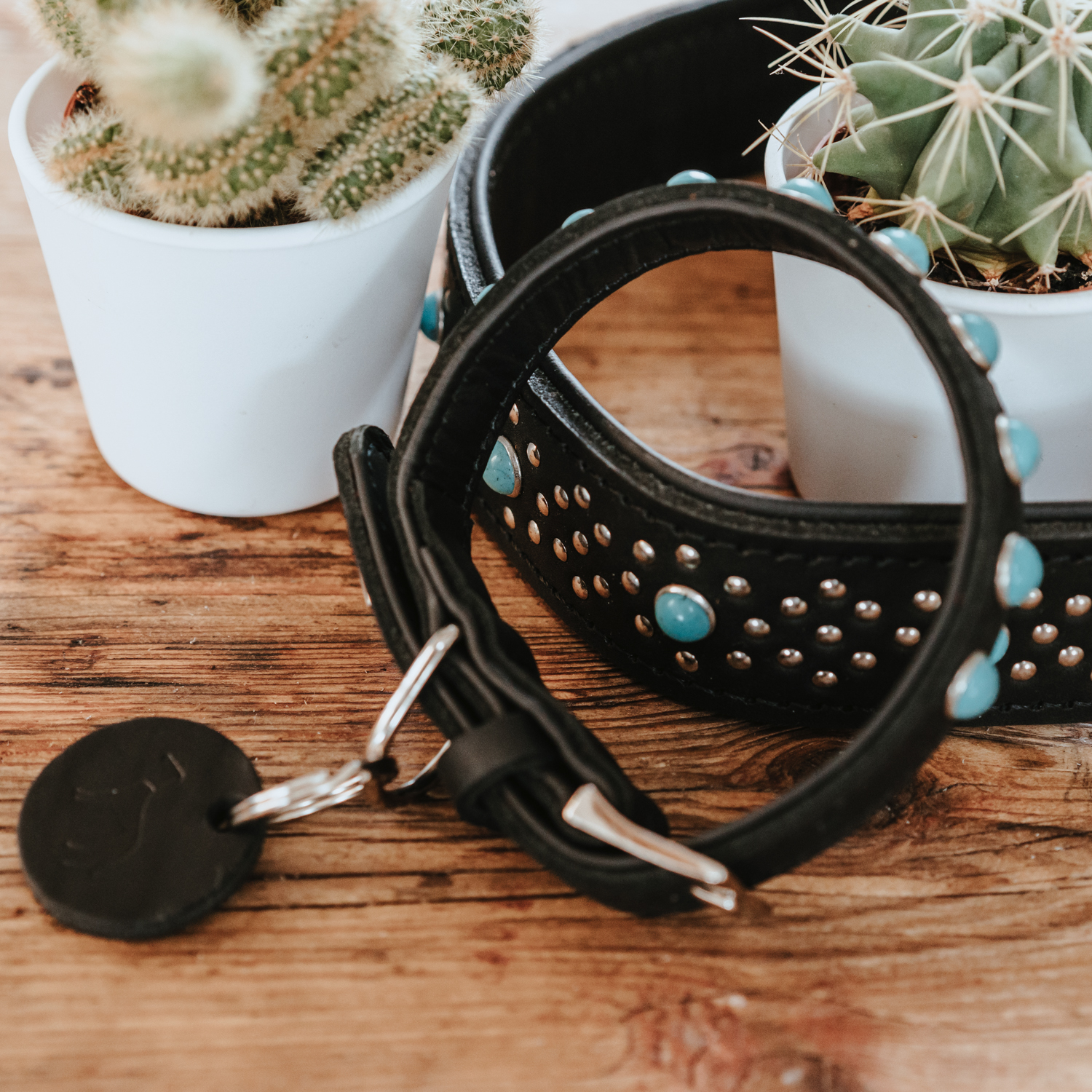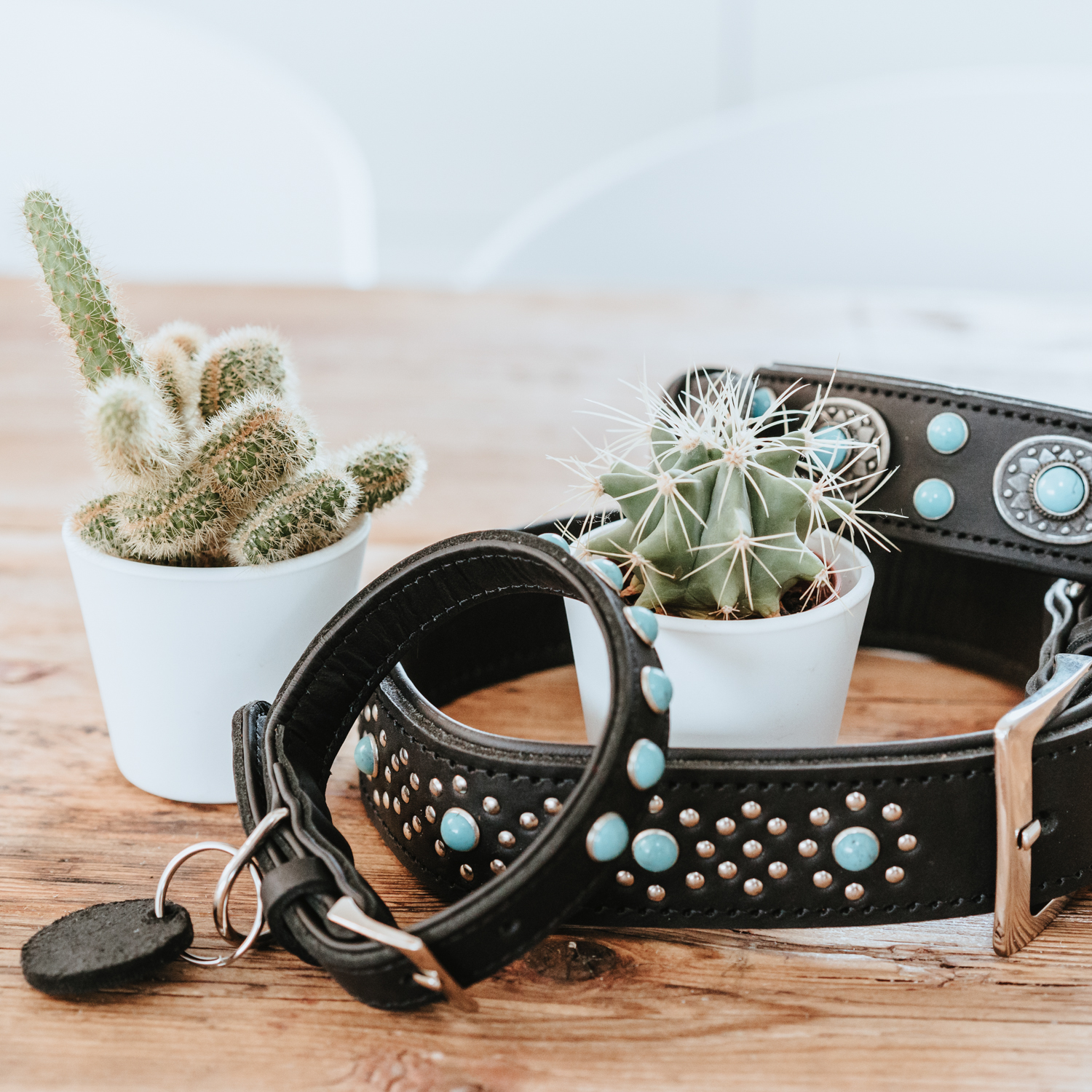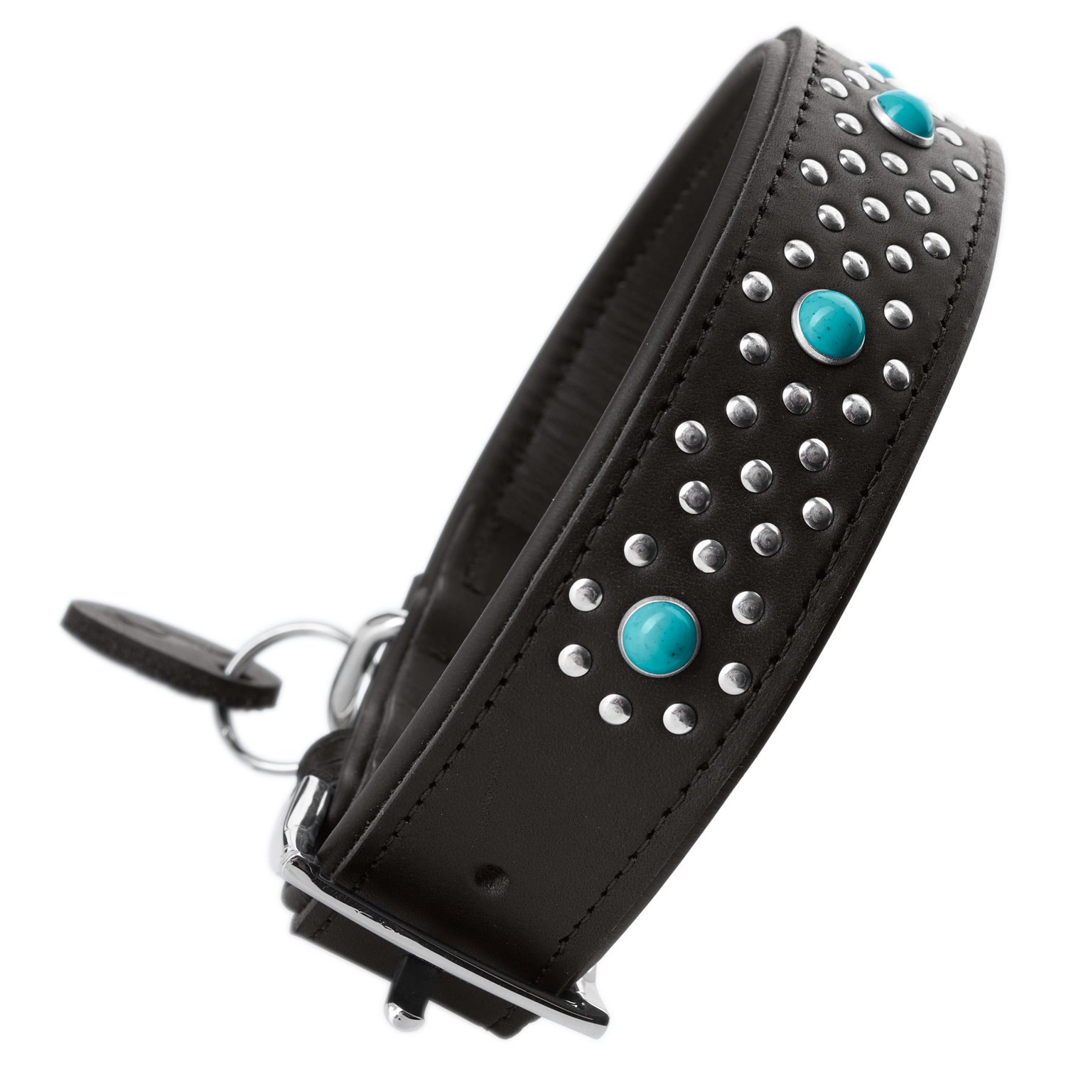 Роскошь доступная вашему питомцу. Ошейник Madona – это уникальное сочетание высококачественной телячьей кожи и благородной бирюзы.