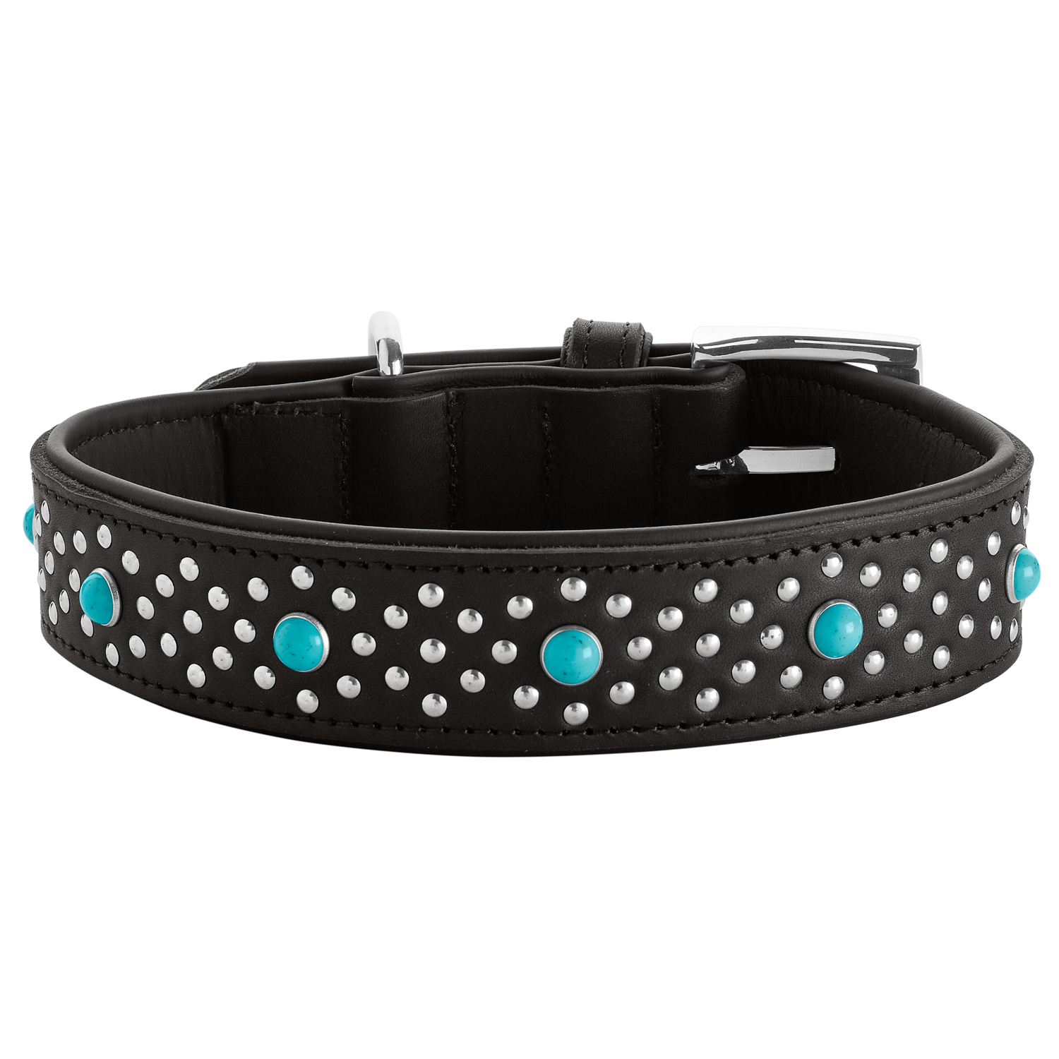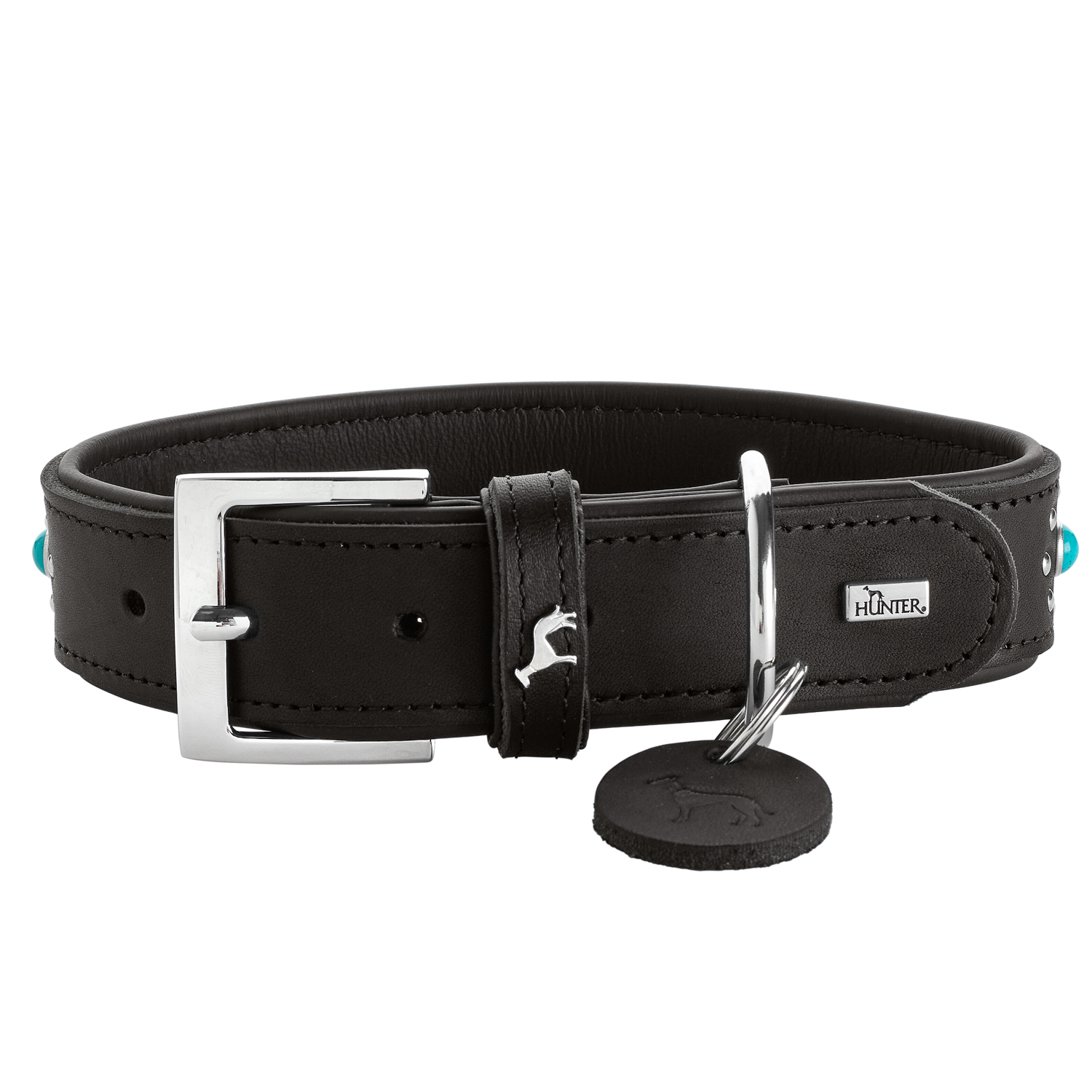 Hunter ошейник для собак Madona L (45-55 см) натуральная кожа, черный, фурнитура с имитацией бирюзы