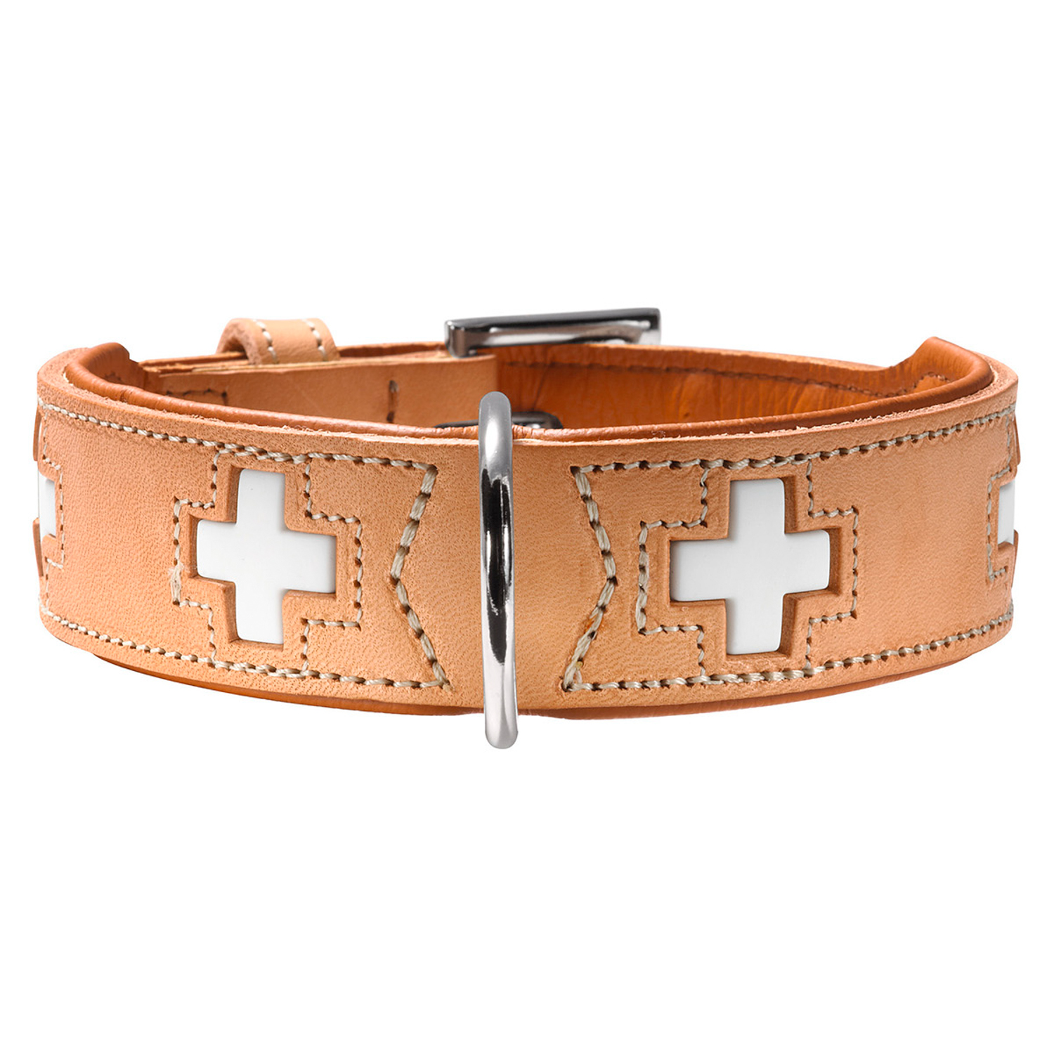 Hunter (Хантер) Swiss 55(Свисс) – это ошейник для собак средних и крупных пород из экологической, мягкой и эластичной кожи, изготовленный немецким производителем Hunter. Он регулируется в диапазоне от 41 до 49 см. Ширина ошейника составляет 3,5 см. Металлические части покрыты никелем. Цвет: бежевый, модный дизайн «швейцарский флаг».