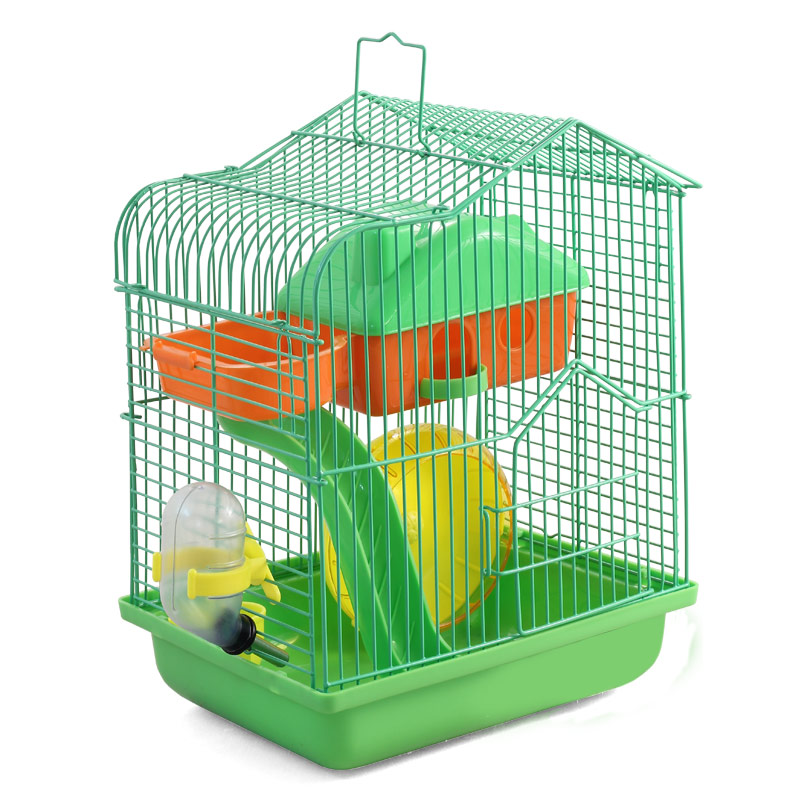 Вертикальная цветная клетка с фигурной крышей. Она не занимает много места и отлично подходит для мелких домашних животных вроде крыс, мышей и хомяков. В комплектацию изделия также входят: пластиковая миска, поилка с носиком, горка со второго яруса на первый, вместительный домик и беговое колесо. Клетка также оборудована специальным пластиковым наружным поддоном, облегчающим процесс уборки, а удобная ручка сверху максимально упрощает транспортировку изделия. Цвет: голубой, желтый, розовый, зеленый. Размер изделия: 225х170х290мм.