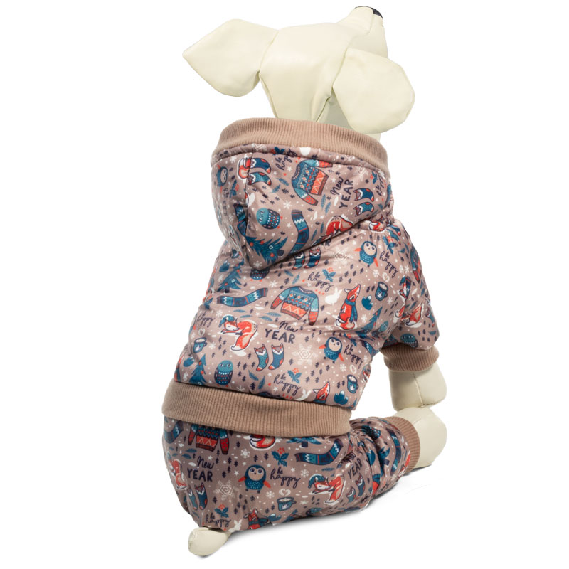 Утепленный комбинезон «Зимний лес» — это практичный, стильный и по-настоящему теплый аксессуар для собак. Такая одежда защитит шерсть животного от дождя и грязи, а непродуваемая ткань — от сильного ветра и холода. Комбинезон садится «по фигуре» питомца и не стесняет его движений во время прогулки. Изделие с модным принтом и капюшоном надежно фиксируется при помощи трех заклепок на животе, а на штанинах предусмотрены удобные резинки, препятствующие попаданию грязи или налипанию снега снизу. Подкладка: футер. Длина спины: 200мм; обхват груди: 340мм; обхват шеи: 240мм. Цвет: светло-коричневый.