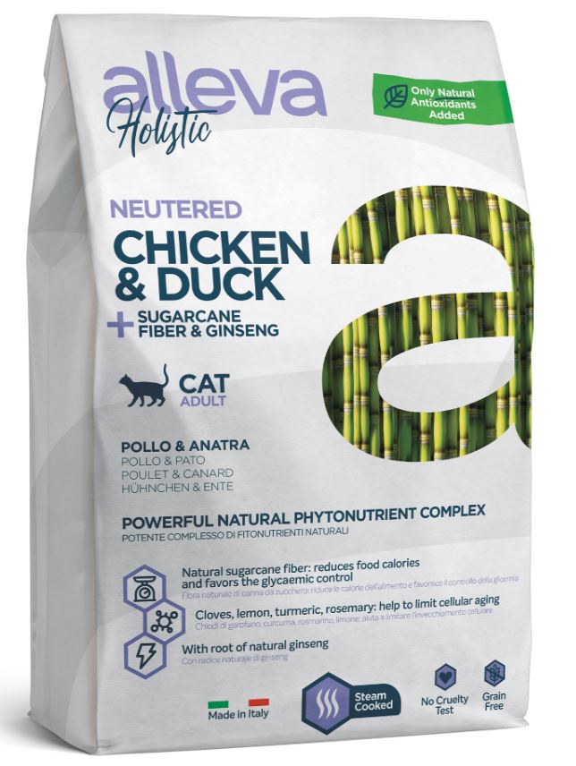 Корм Alleva Holistic Cat Neutered Chicken & Duck для стерилизованных кошек, курица, утка, волокна сахарного тростника и женьшень, 400 г