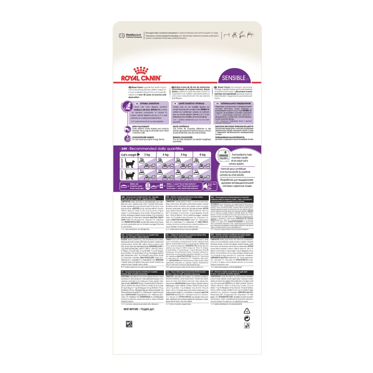 ROYAL CANIN® Sensible 33 поддерживает здоровье мочевыделительной системы взрослой кошки.