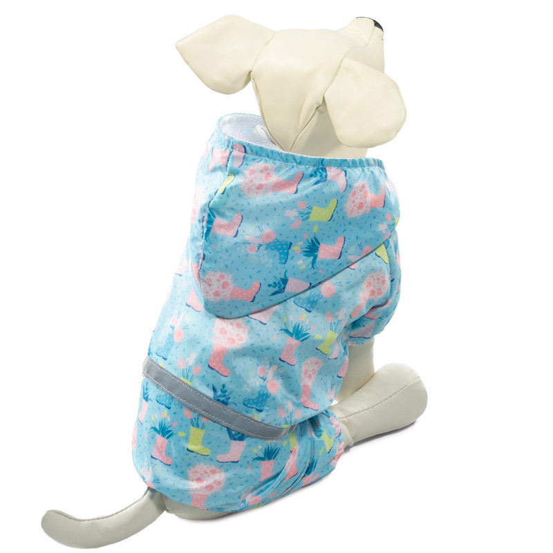 Костюм-дождевик «Букет» — это удобный и функциональный аксессуар для собак, который просто незаменим в дождливую погоду. Изделие защитит шерсть животного от дождя и грязи, а непродуваемая ткань — от сильного ветра. Костюм имеет стильный дизайн, а универсальный фасон не стесняет движений питомца во время прогулки. Особенностью дождевика является светоотражающая лента, идущая по талии изделия, — для повышения безопасности животного на дороге. Дождевик также имеет капюшон и фиксируется при помощи трех заклепок на животе, а на штанинах предусмотрены удобные резинки, препятствующие попаданию грязи и влаги снизу. Длина спины: 200мм; обхват груди: 340мм; обхват шеи: 240мм. Цвет: голубой.