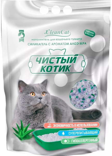Наполнитель Чистый Котик для кошек, силикагель, колотый, с алоэ вера, 3.5 л, 1.3 кг