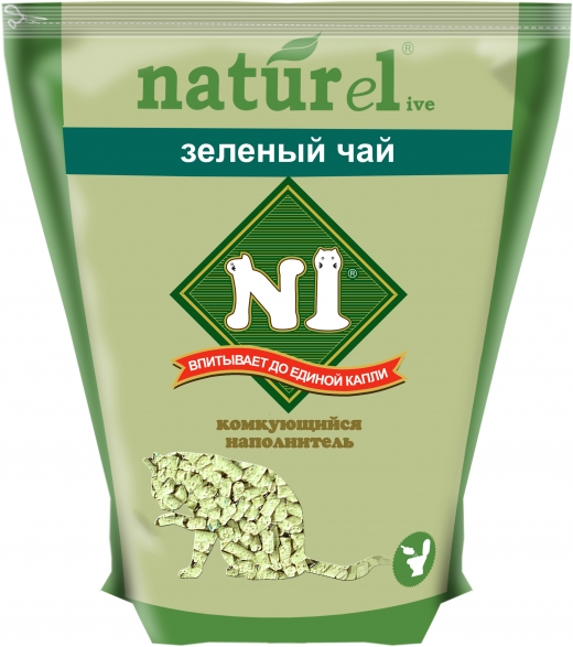 Наполнитель N1 NATUReL Зеленый чай для кошек, древесный, комкующийся, 4.5 л, 1.75 кг