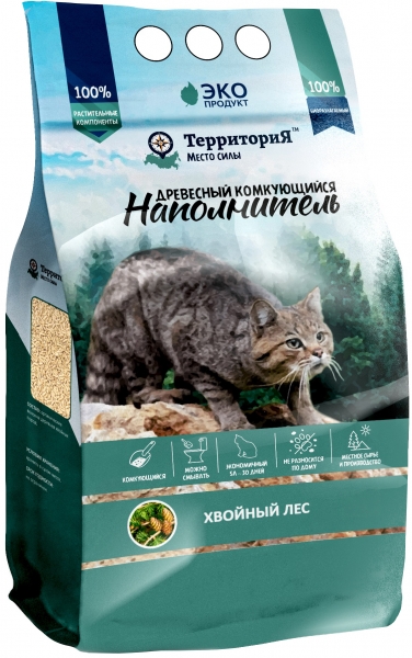 Наполнитель Территория Хвойный Лес для кошек, древесный, комкующийся, с ароматом сосны, 5 л, 1.9 кг