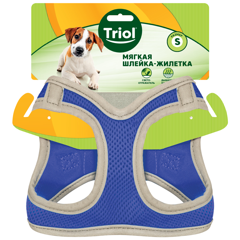 Шлейка-жилетка мягкая нейлоновая синяя S, обхват груди 360-410мм, Triol