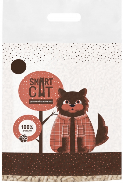 Древесный наполнитель Smart Cat мгновенно впитывает влагу и надежно устраняет неприятные запахи.