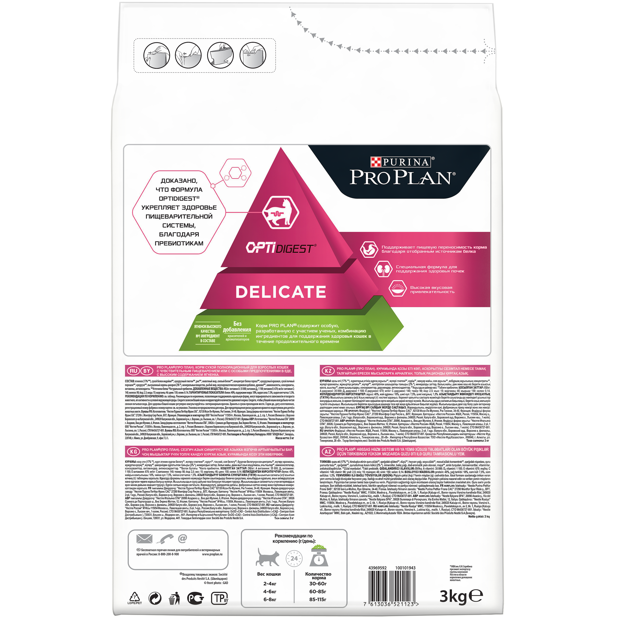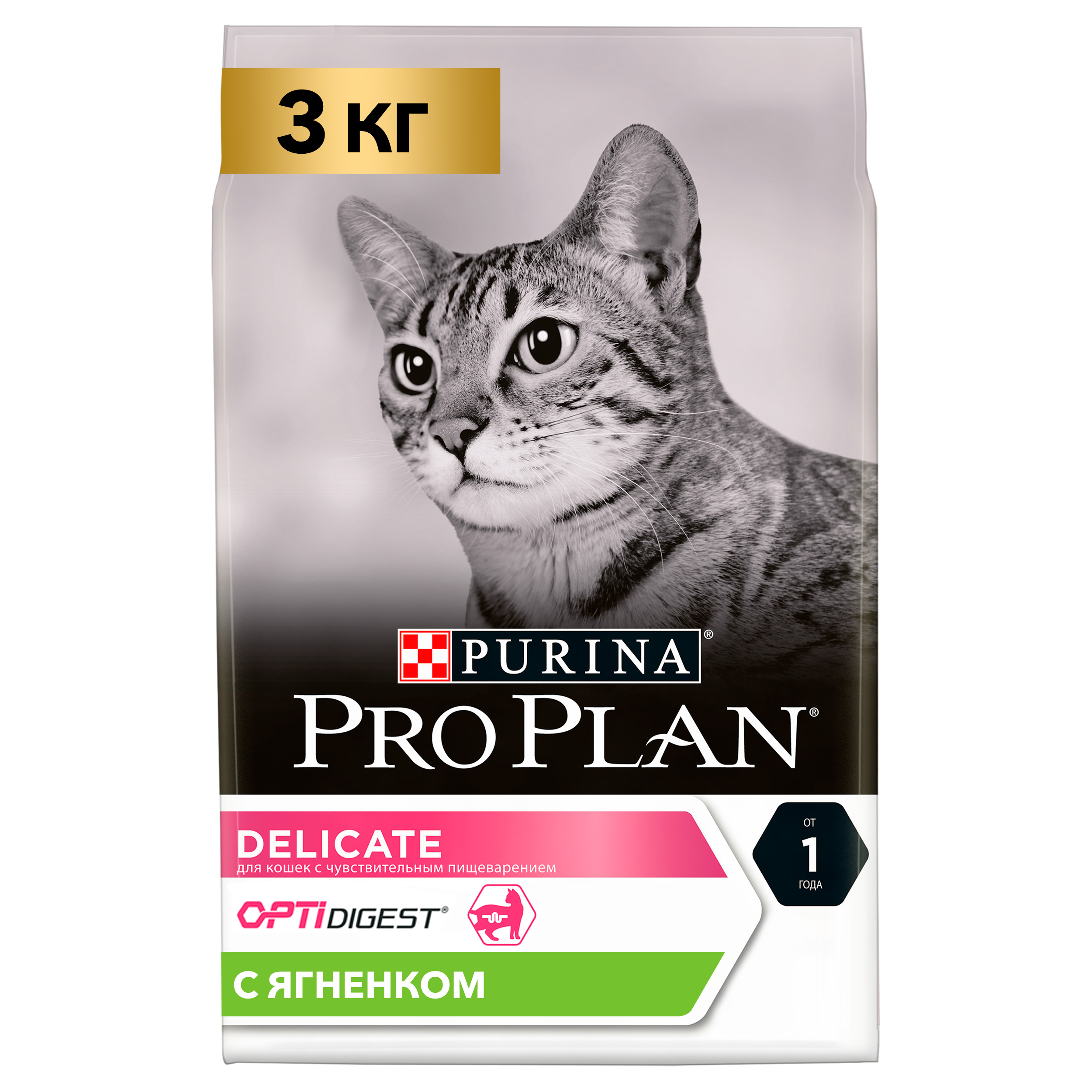Сухой корм Pro Plan® для взрослых кошек с чувствительным пищеварением или с особыми предпочтениями в еде, с высоким содержанием ягненка, Пакет, 3 кг