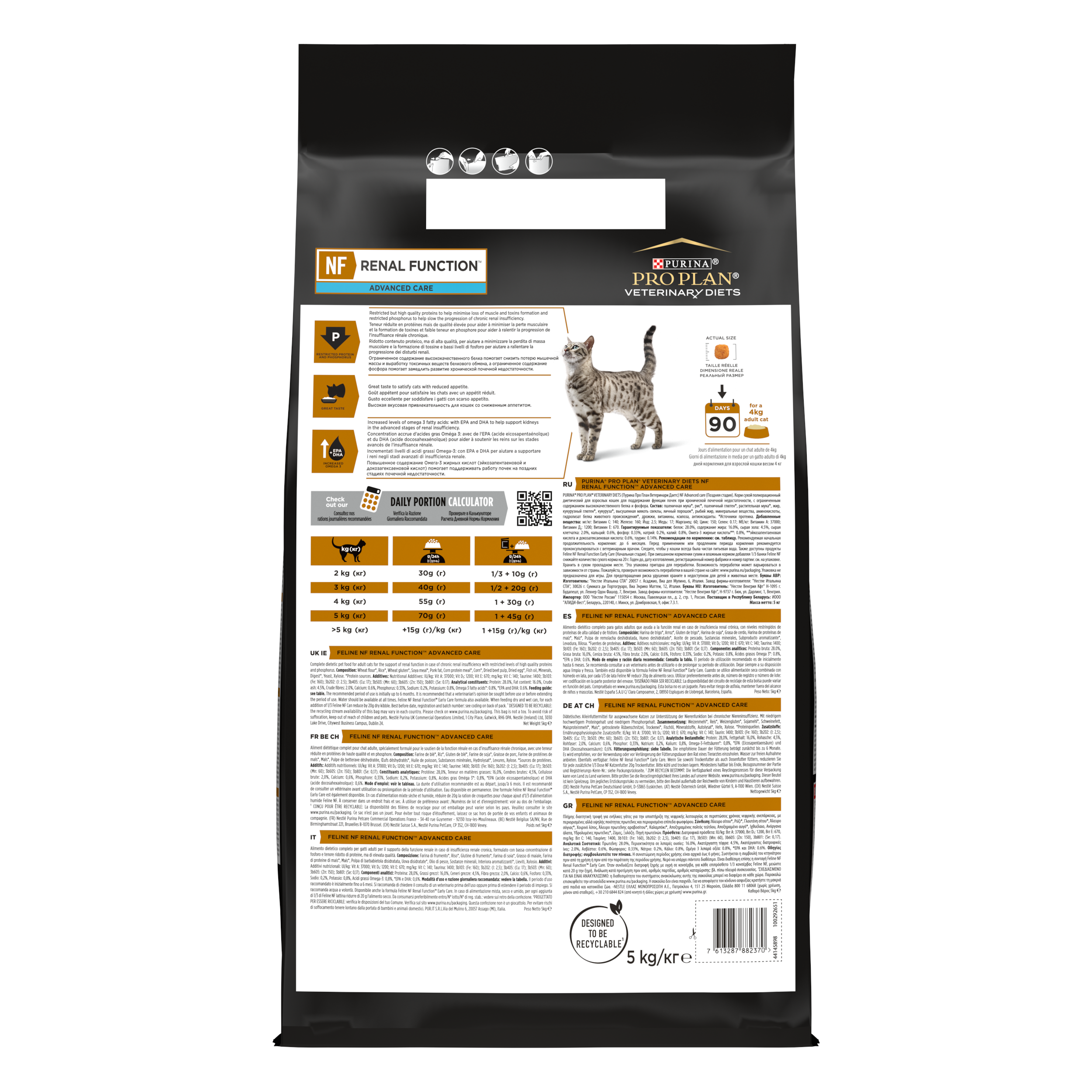 Корм сухой полнорационный диетический PRO PLAN® Veterinary Diets NF Renal Function (Ренал Фанкшен) Advanced care (Поздняя стадия) для взрослых кошек для поддержания функции почек при хронической почечной недостаточности, с ограниченным содержанием высококачественного белка и фосфора. Использование данного корма рекомендовано под наблюдением ветеринарного врача.