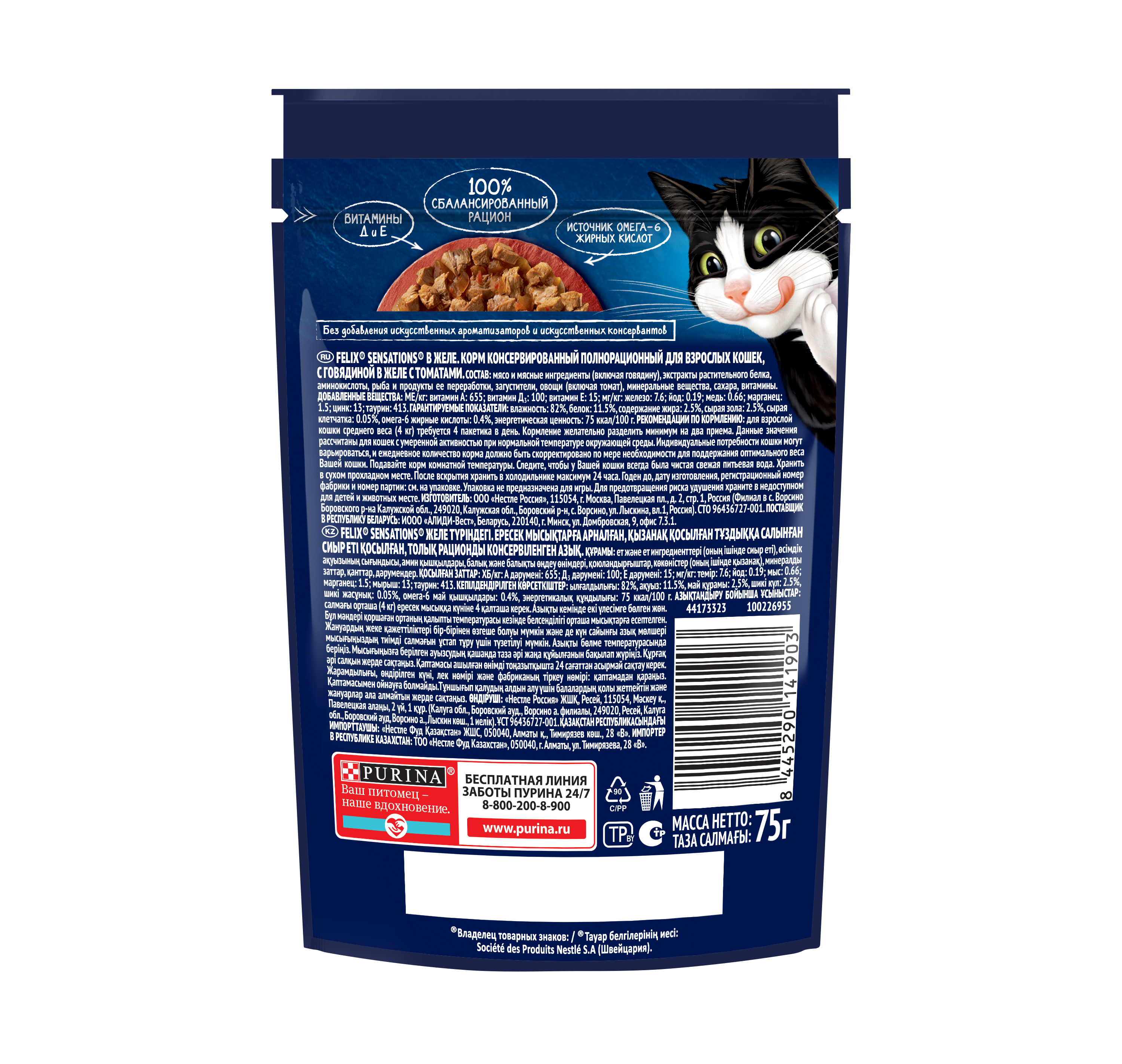 Чтобы Ваш питомец получил богатейшую палитру ощущений вкуса и аромата, эксперты Purina создали влажный корм для взрослых кошек Felix «Sensations». Влажные корма для кошек Felix, созданные из высококачественных ингредиентов с заботливо приготовленными нежными кусочками в аппетитном желе подарят Вашему любимцу потрясающие ощущения и оптимальную комбинацию питательных веществ для активной и здоровой жизни.
